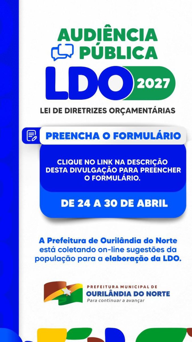 A Prefeitura convida você a participar da Consulta Pública Eletrônica para elaboração da LDO 2027.